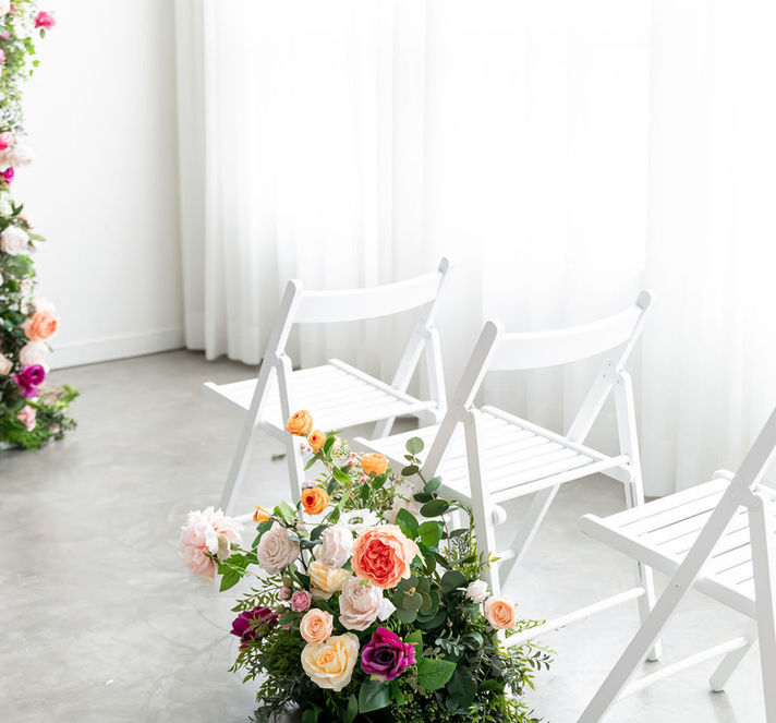 Complement our Demi floral arch with the matching aisle arrangements. This stunning set includes six floral pieces, crafted with real-touch florals for an incredibly lifelike look and feel. They are perfect for aisle arrangements during your ceremony and can also be repurposed throughout your reception for added elegance.
