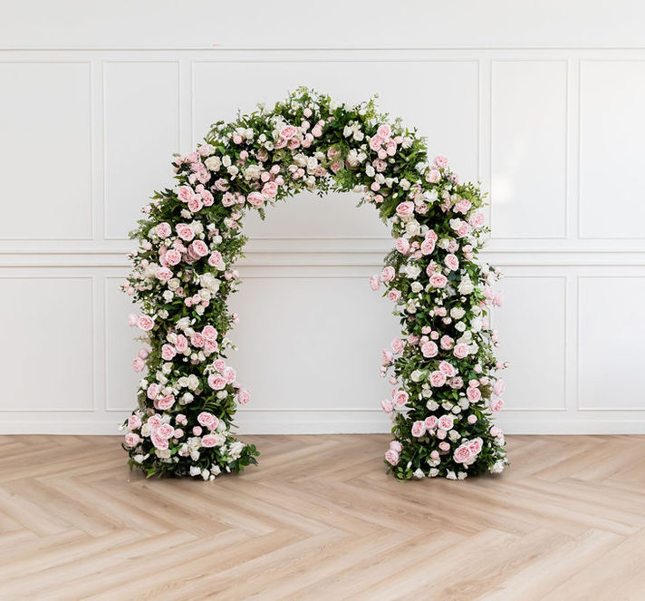 Our Grace Arch adds a touch of elegance and simplicity to your event. Crafted with real-touch florals for an incredibly lifelike look and feel, this stunning floral design features the same whimsical greenery you love, enhanced with soft pink blush blooms for a romantic, modern look.