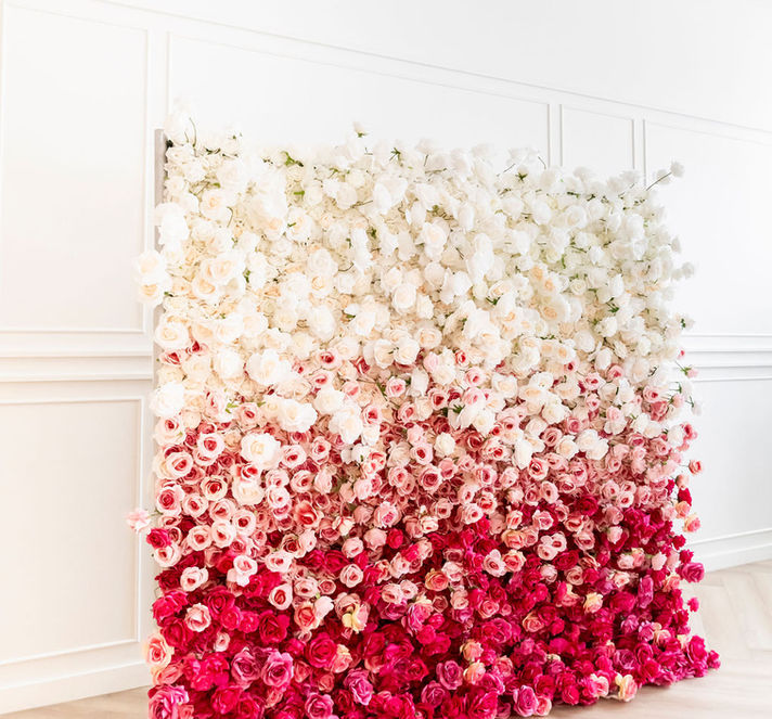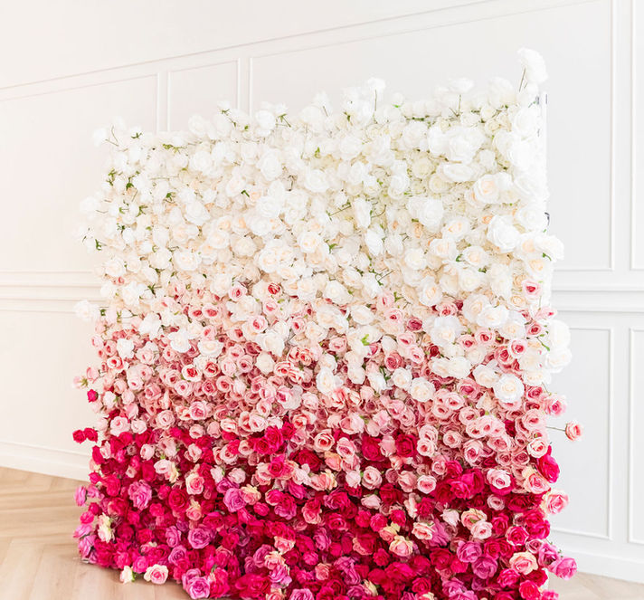 Our 5D Ombre Rosé Flower Wall has dimensional shades of soft pink, mauve pink, vibrant ruby and rouge and ivory tones. This flower wall is worth all of the hype it gets!